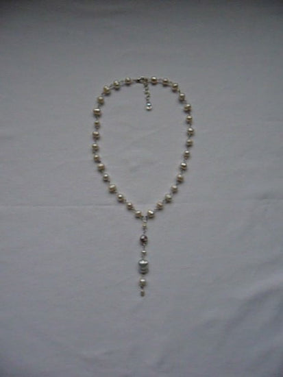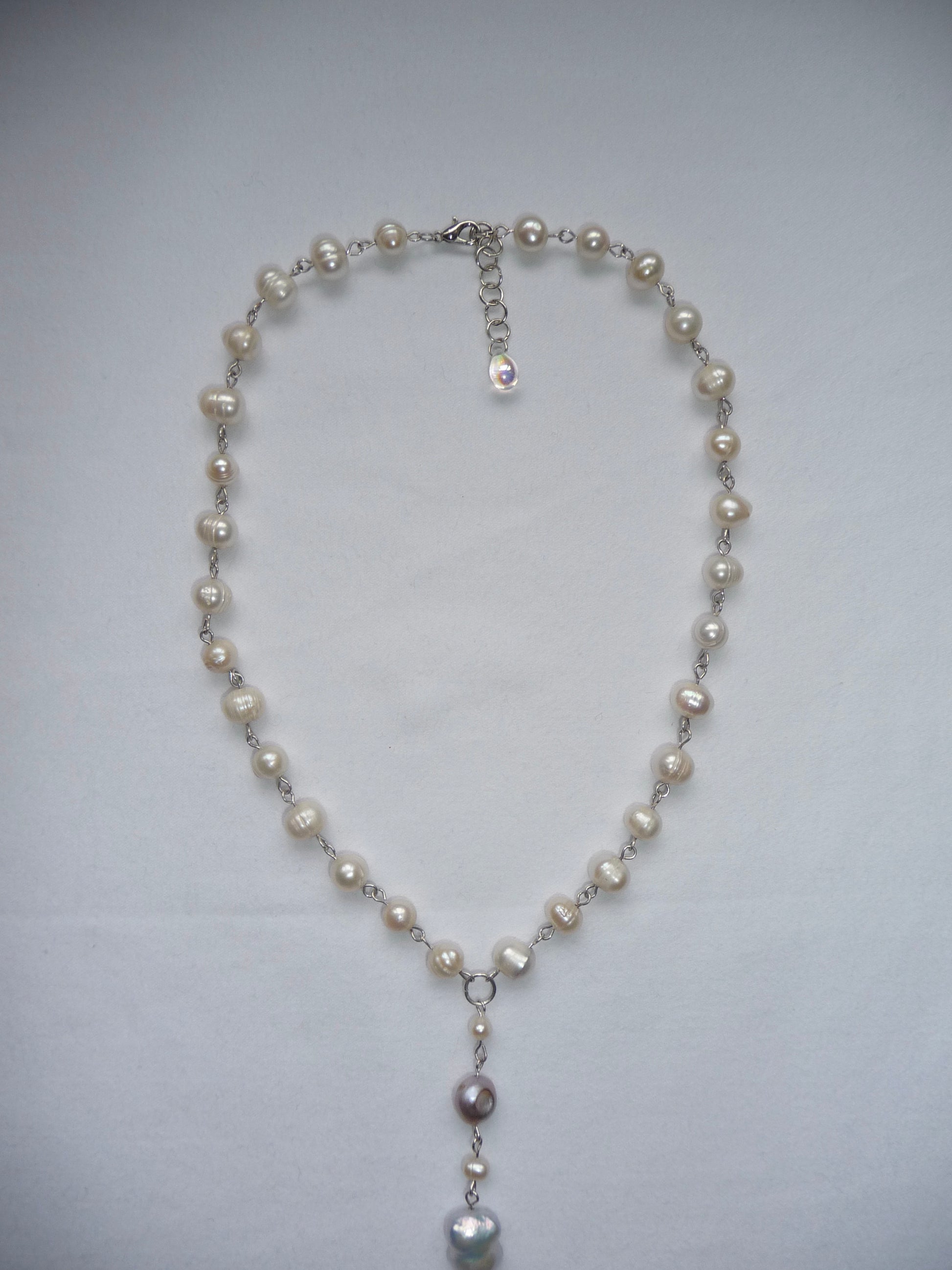 The "Lucy" Necklace is handmade using freshwater pearls upcycled from unwanted jewellery. This necklace features oval white freshwater pearls and rare light purple irregular shaped pearls.