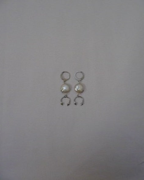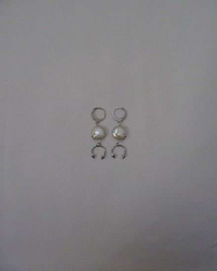 The "Hardcore" Earrings are handmade using upcycled materials. These earrings feature upcycled piercing jewellery, freshwater coin pearls finished with stainless steel huggie clasps.